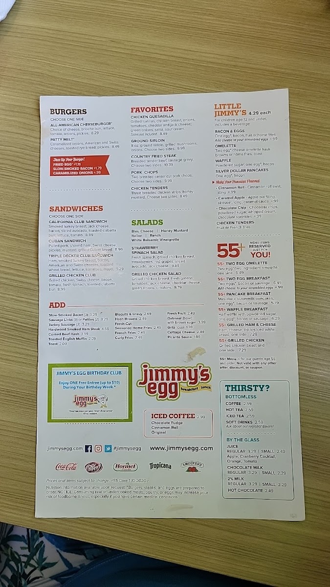 Welcome to Jimmy's Egg - Norman, where breakfast dreams come true! Located at 1000 E Alameda St, this cozy dining spot offers a menu that caters to all tastes and preferences. The Classic Combo allows you to customize your meal with two breakfast meats, two eggs, and two sides for just US$12.69. For those craving hearty flavor, the Hog Wild Skillet is a standout, packed with seasoned hash browns, sausage, and a medley of fresh ingredients, all topped with two eggs CRACKED TO ORDER for US$11.59.